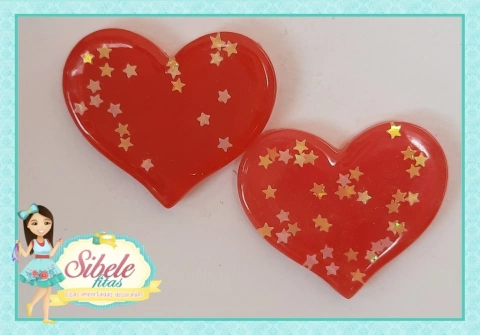 Aplique Acrílico Coração Vermelho com Estrelinhas - Unidade